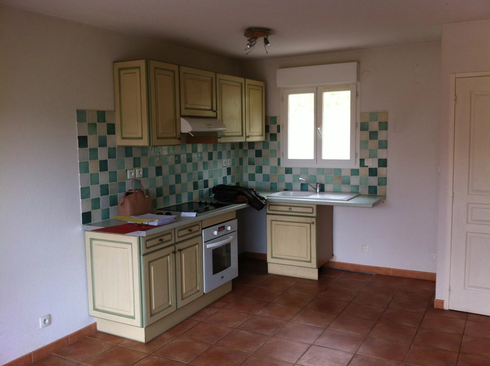en RDC séjour cuisine aménagée, équipée de plaque cuisson et hotte, - grande baie vitrée au sud ouverture sur terrasse et jardin